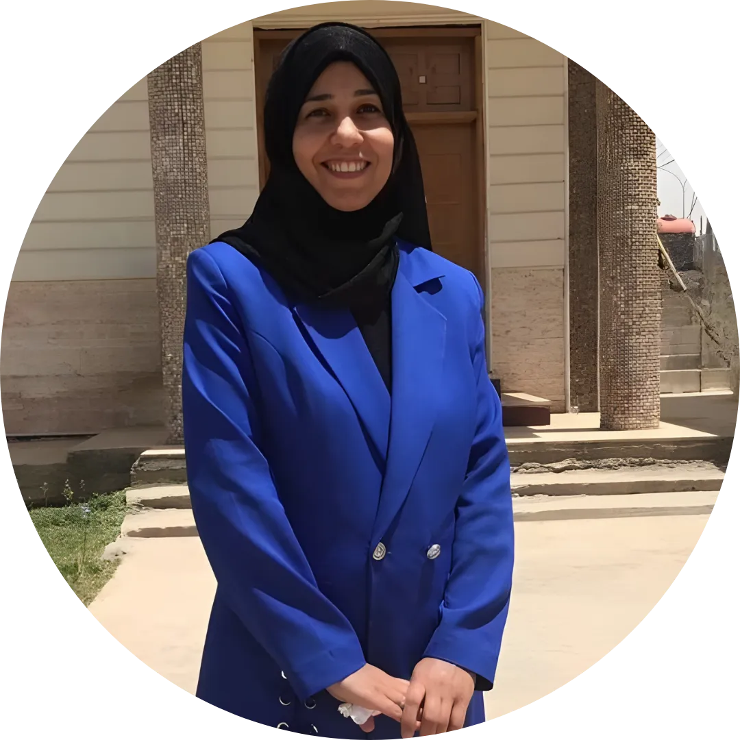 بشرى واحد علي — مُدرِّسة لغة إنجليزية بخبرة تتجاوز 20 عاماً في التعليم الجامعي والمدارس والمعاهد، ومحاضِرة في جامعة بغداد، وطالبة دكتوراه في جامعة USM الماليزية ضمن تخصص اللغة والتعليم.